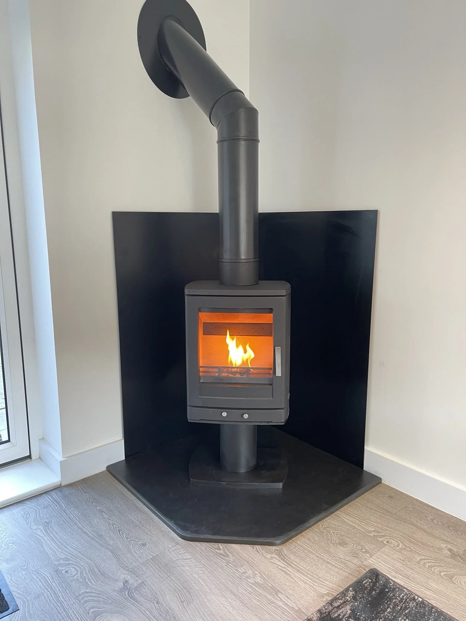 Many walls (like plasterboard, timber-framed, or stud walls) are combustible., Log burners radiate intense heat—especially from the rear—which can cause nearby walls to overheat or even ignite over time if not protected.